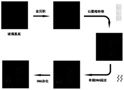 本发明提供的基于石墨烯晶体管的DNA传感器,包括电子级玻璃和设置于所述电子级玻璃上的栅极、源极和漏极;所述源极和漏极之间设置有石墨烯沟道;所述栅极表面固定有单链DNA。本发明提供的基于石墨烯晶体管的DNA传感器中单链DNA直接固定在栅极表面,无需在石墨烯上固定DNA;其三电极结构和石墨烯沟道,使其对电压的变化感应非常强,很小的电压变化就会引起相应的电流变化;利用输入栅极的电压来控制石墨烯沟道电流,降低了操作电压;同时应用石墨烯为沟道材料,增大传感器的灵敏度。实验结果表明,本发明提供的基于石墨烯晶体管的DNA传感器探测器操作电压低于1V,检测灵敏度达到4pM。