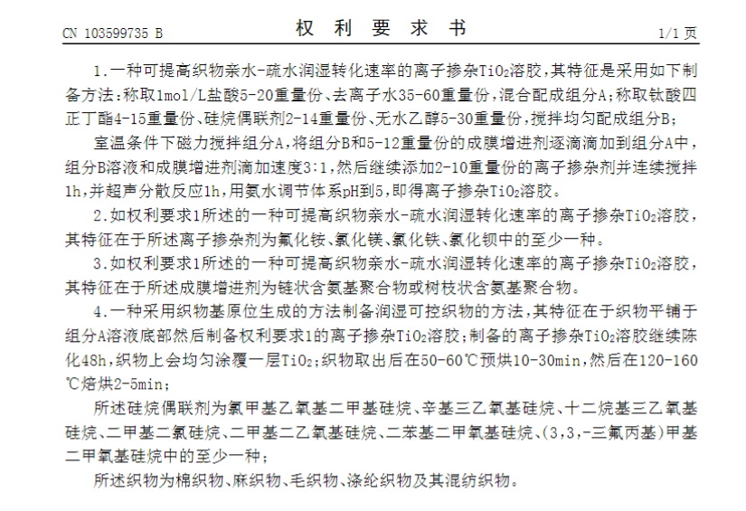 一种可提高织物亲水-疏水润湿转化速率的离子掺杂Ti