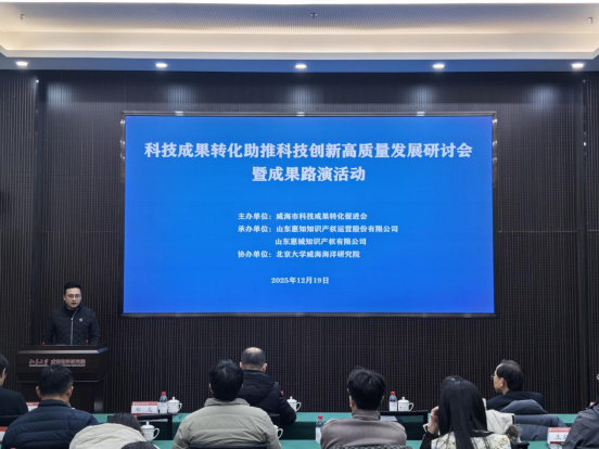 12月19日下午,由威海市科技成果转化促进会主办的“科技成果转化助推科技创新高质量发展研讨会”在北京大学威海海洋研究院成功举办。本次研讨会汇聚高校科研院所、企业、知识产权及法律服务机构等多方力量,通过主题分享、成果路演等形式,各领域专家聚焦科技成果转化全链条痛点与解决方案,分享乐基成果转化实践经验与前沿思考。