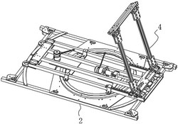 本发明提供一种旋转底座,包括底座旋转调节模块和高度调节模块,所述高度调节模块固定在底座旋转调节模块上;所述底座旋转调节模块包括底座、圆台转盘、旋转调节电机、电机固定板、主动齿轮和齿条板,所述圆台转盘活动连接在底座上,所述旋转调节电机和圆台转盘通过电机固定板固定连接,所述齿条板固定于底座下端,所述旋转调节电机的输出轴固定连接有主动齿轮,所述主动齿轮与齿条轮啮合连接,所述电机固定板下端与圆台转盘上端固定连接。本发明的目的在于提供一种旋转底座,旋转速度快,旋转结构简单可靠。
