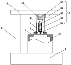 本发明涉及超声波传感器加工设备技术领域,且公开了一种超声波传感器的定位加压装置,包括底座,底座的上端固定连接有支撑柱,支撑柱远离底座的一端固定连接有支撑板,底座上设有定位壳体,定位壳体的上端中心处开设有通孔,支撑板的下端中心处对应定位壳体的位置固定连接有下压机构;下压机构包括控制器、驱动电机、螺纹杆、一端开口的螺纹管和下压板,驱动电机和控制器依次连接在支撑板的下端,驱动电机的输出端通过联轴器与螺纹杆的一端相连接。该超声波传感器的定位加压装置,能够解决目前在装配过程中容易出现压电陶瓷片偏离谐振腔的中心,导致信号衰减,传感器灵敏度降低的问题。