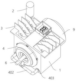 本发明提供了一种机械传动的循环冷却式三相电机,涉及三相电机技术领域,包括:电机箱体,所述电机箱体的顶部两侧为凸缘结构,电机箱体的右侧后上方一体式设置有补水通道;电机箱体的顶部两侧开设有两组散热水槽;电机箱体的中间上下侧开设有两组过水通道;设置垂直滑座,提供了自动循环功能,不需要额外连接供水的动力,利用偏心轮构成往复运动,在L形通道上下移动的过程中,上下伸缩活塞管反复挤压,下侧伸缩活塞管内的冷却水穿过单向阀A进入上侧伸缩活塞管,上侧单向阀A内的冷却水进入上侧过水通道,最终排入散热水槽完成循环,提供持续的水冷降温效果,节约成本,解决了现有三相电机缺乏自循环结构的问题。