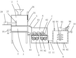 本发明公开了一种农村生活垃圾处理装置及方法,本装置包括依次连通的进料斗、挤压室、液体室、分拣室、粉碎室及堆肥室;挤压室内设置有挤压板,液体室通过液体转运管与堆肥室相连通,分拣室内设置有分拣转轴,粉碎室内设置有多组粉碎转轴组,堆肥室内设置有搅拌轴;本方法为:经初步分选获得以有机物为主的生活垃圾,生活垃圾依次经挤压、分拣、粉碎后,经好氧堆肥处理后成为可被再次使用的作物肥料。本发明通过对农村生活垃圾处理,实现资源的循环利用,并保护了环境。