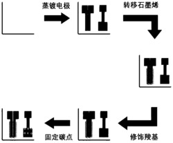 本发明提供了一种石墨烯晶体管离子传感器,包括衬底和设置于所述衬底上的栅极、源极和漏极;所述源极和漏极之间设置有石墨烯沟道;所述栅极表面固定有碳点。本发明将碳点固定在石墨烯晶体管栅电极表面,碳点能够吸附溶液中的铁离子,从而改变晶体管与样本溶液之间的双电层界面特性,使石墨烯沟道中的电流发生变化,通过检测沟道中的电流变化,可以检测溶液中的微量铁离子;本发明提供的石墨烯晶体管离子传感器的操作电压低于1V,铁离子的最低检测限能够达到10‑16M,且改变铁离子浓度后,传感器的电流即时发生变化,灵敏度非常高。