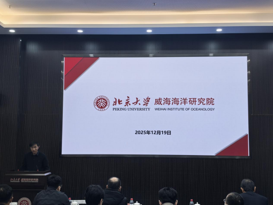 北京大学威海海洋研究院院长助理丁烨介绍了北京大学威海海洋研究院的建设情况、科研布局与成果转化进展。