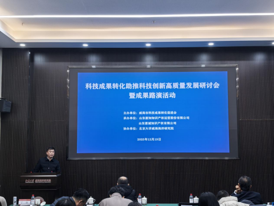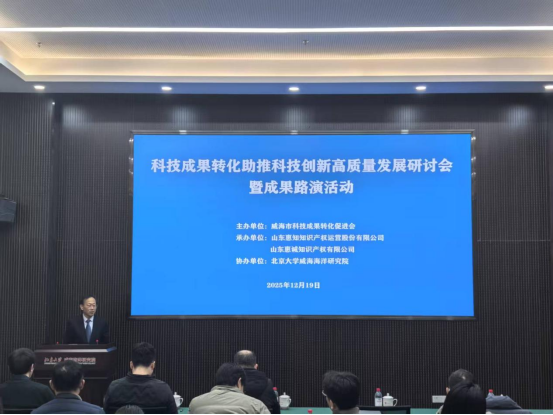 12月19日下午,由威海市科技成果转化促进会主办的“科技成果转化助推科技创新高质量发展研讨会”在北京大学威海海洋研究院成功举办。本次研讨会汇聚高校科研院所、企业、知识产权及法律服务机构等多方力量,通过主题分享、成果路演等形式,各领域专家聚焦科技成果转化全链条痛点与解决方案,分享乐基成果转化实践经验与前沿思考。